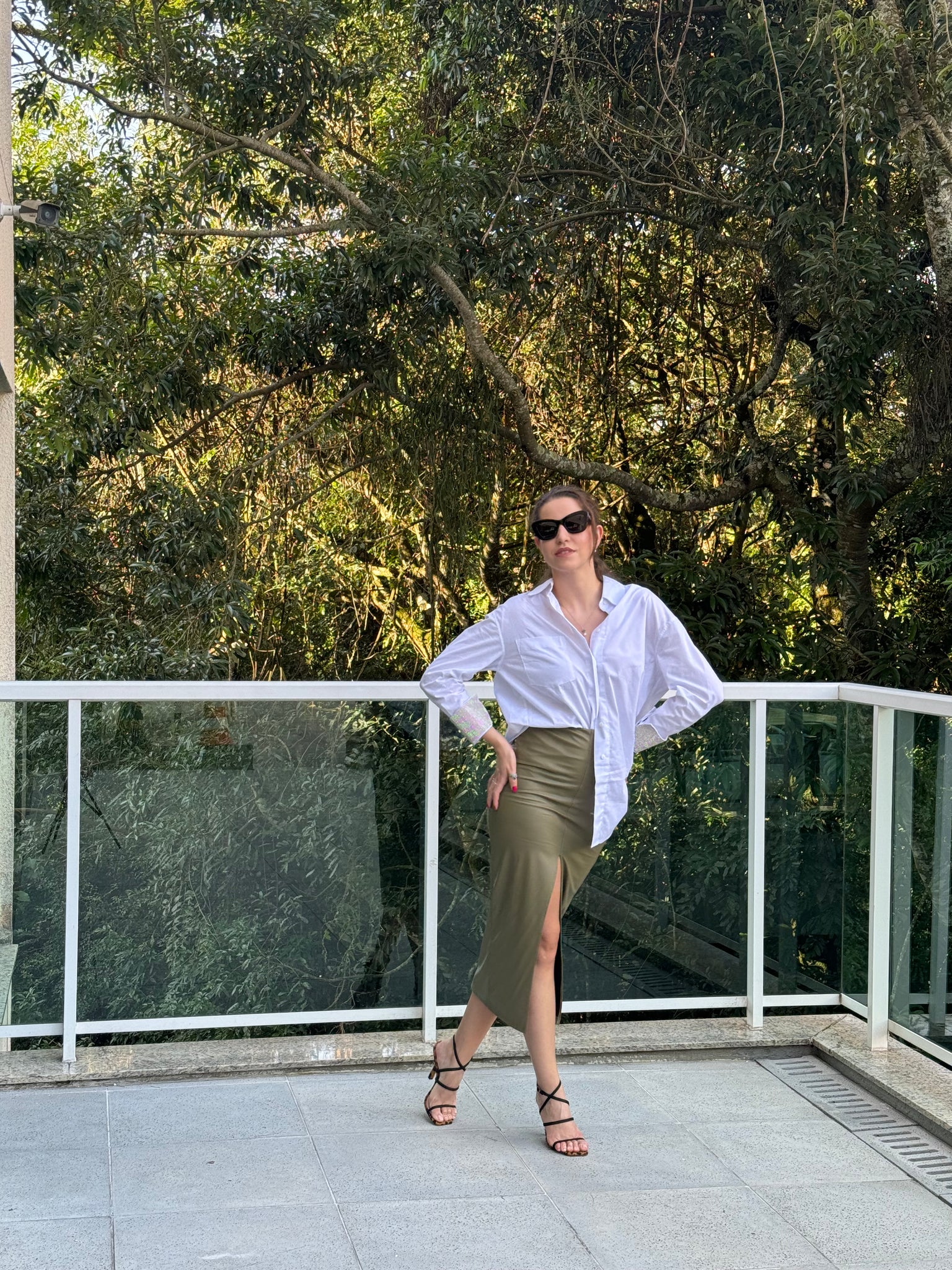 A camisa oversized branca é a peça-chave que transforma qualquer look em algo magnífico. Seu design versátil combina perfeitamente com diversas opções de roupas, trazendo leveza e sofisticação. Com um toque casual e ao mesmo tempo elegante, ela é ideal para quem busca estilo sem esforço. Uma escolha atemporal que eleva a autoestima!